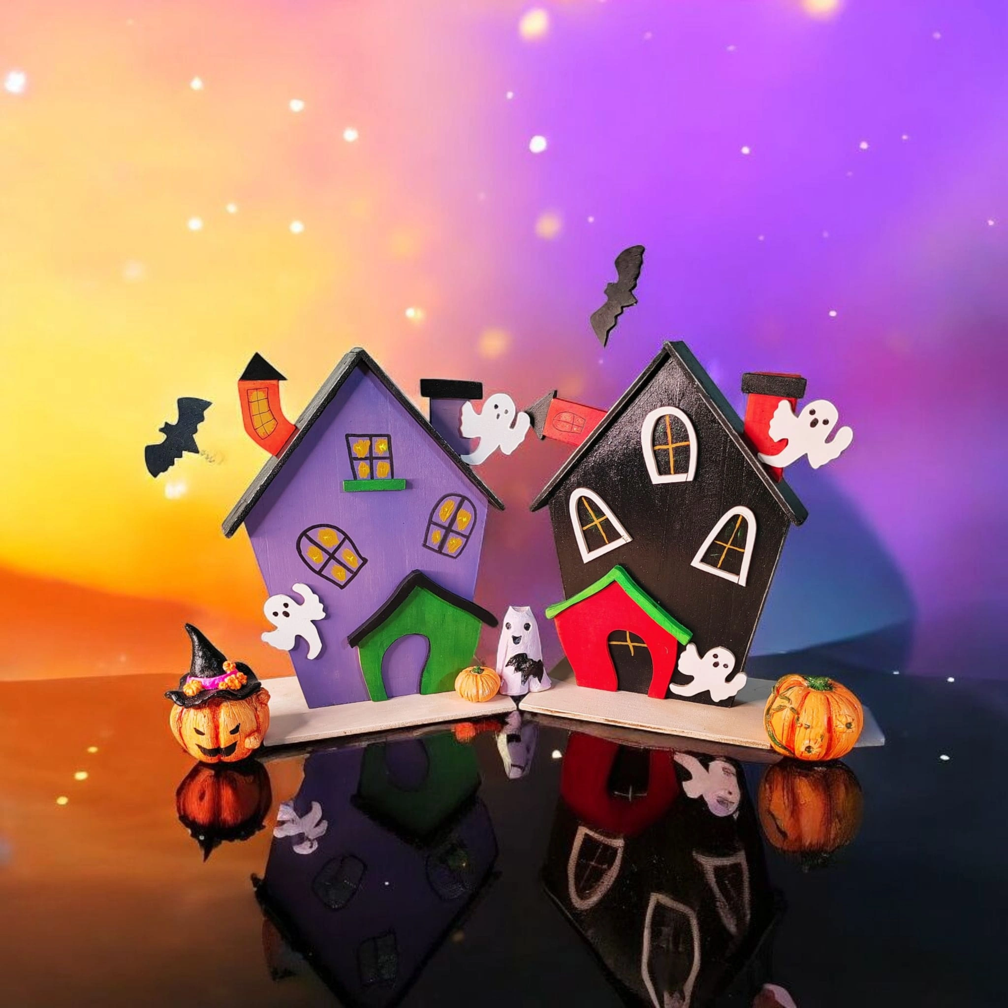 Căsuță neagra cu fantomițe 👻 – decor handmade de Halloween, plin de culoare, farmec și mister, ideal pentru a transforma orice colț al casei într-un loc magic. Ideala pentru iubitorii de Halloween!