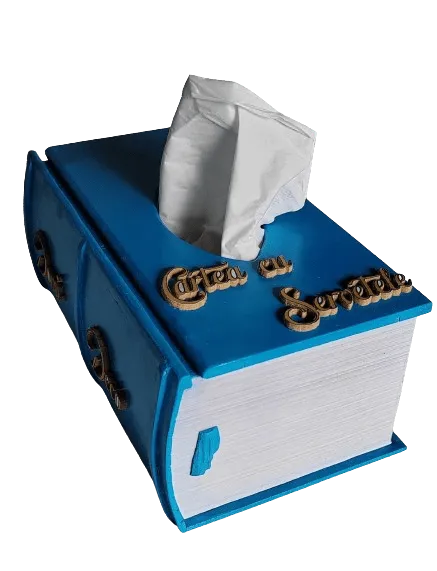 Cutia pentru servetele DomiDeco este recomandata celor care apreciaza functionalitatea ei dar si arta,cu designul ei sub forma unei carti care te-ar atrage sa o citesti datorita culorilor vi si al elementelor iesite in relief.