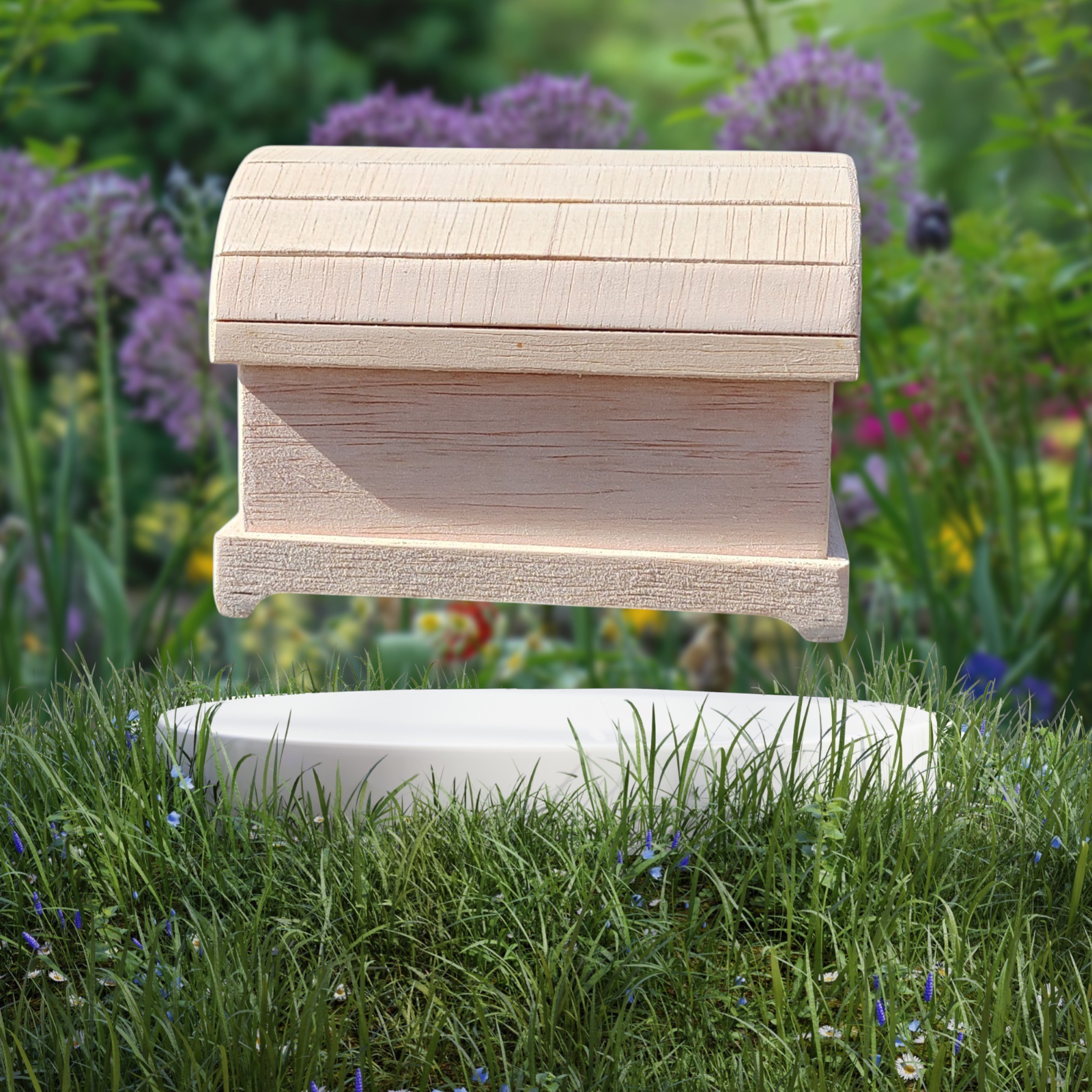 Cutiuțe tip cufăr, realizate din placaj de lemn de 4 mm, cu capac detașabil, dimensiuni 12x7x8 cm. Pot fi personalizate și transformate după preferințele tale – decorate, vopsite sau finisate cu impregnant colorat.