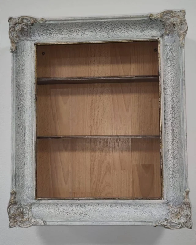 - Detalii decorative: Poate avea detalii decorative precum mânere sau balamale ornamentate, care să completeze aspectul vintage al dulăpiorului.