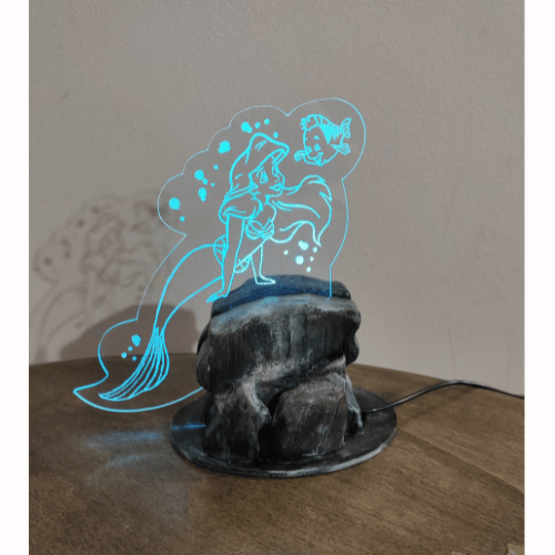 Lampă 3D Handmade cu Gravură Mica Sirenă – Cadou de Poveste pentru Copii